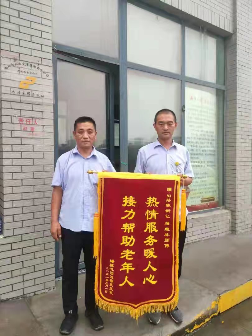 原來,8月27日中午12點左右,陳新讓駕駛93路公交車行駛至宗申產(chǎn)業(yè)園站臺時,看到一位行動不便的老人,顫顫巍巍走向車輛并招手示意。陳新讓急忙下車攙扶老人,并幫其安排好座位。經(jīng)詢問得知,老人患有嚴重中風,家住蟠桃花園,攔了好幾輛出租車都遭遇了拒載,十分焦急??申悗煾敌旭偟姆较蚯『门c老人的目的地相反。于是陳師傅駕車行駛至民祥園路站,將老人攙扶到馬路對面乘坐93路。不久,93路蔣繼林駕車抵達站臺,陳新讓告知蔣師傅老人的具體情況,隨后,蔣師傅與其家屬取得聯(lián)系,讓其家人在蟠桃花園站等待,家人十分感動,連聲道謝!