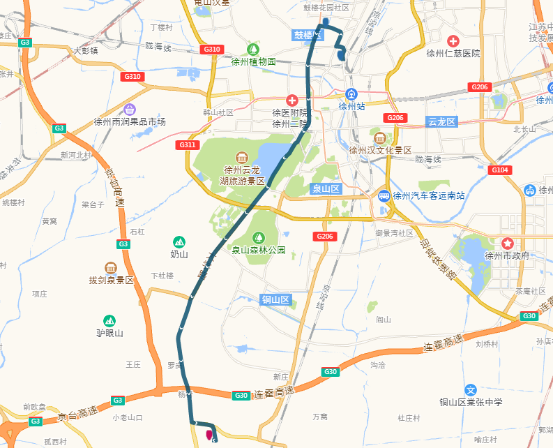 (2)沿途停靠站點(diǎn)(公交站臺):新建北村、電力醫(yī)院、祥和小區(qū)、馬場村(中山北路)、鼓樓區(qū)政府、后勤學(xué)院、礦大南湖校區(qū)、國基城邦、臺上草莓小鎮(zhèn)。