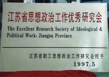1997年5月,江蘇省職工思想政治工作研究會(huì)授予我公司“江蘇省思想政治工作優(yōu)秀研究會(huì)”稱號(hào)。