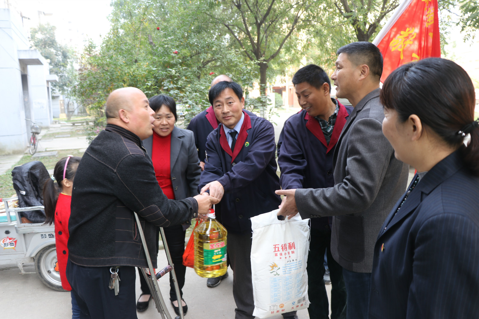 10月28日重陽節(jié),全國“敬老文明號”14路線志愿者服務隊,來到惠民小區(qū)開展“雙關愛”活動,關愛空巢和半失能老人,來到“一對一”結對幫扶的張金富、張金設、劉云強等4位失能和半身能老人家中,為他們送去了米、面、油等生活品。