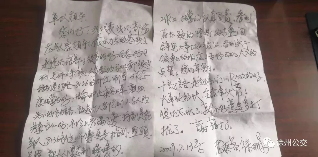 7月15日上午,一位老年乘客來到新巴士公司,送來一封表揚信,對69路駕駛員的服務稱贊不已,“雖然今天天氣熱,但是我還是要親自送表揚信,這么優(yōu)秀的同志,應該得到表揚。”老人這樣說道。
