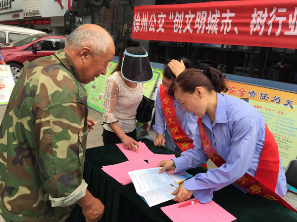 6月16日上午,賈汪公司組織駕乘人員身披綬帶,在賈汪區(qū)中心步行街開展“創(chuàng)文明城市,樹行業(yè)新風(fēng)”便民咨詢活動(dòng),發(fā)放《徐州公交乘車指南》,征求市民建議和意見,受到廣大市民好評。?xml:namespace>