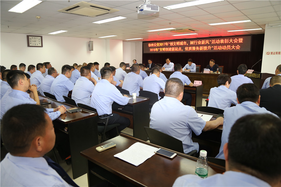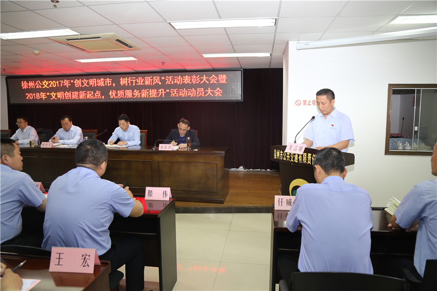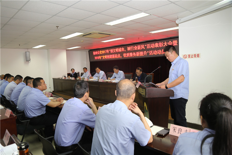 5月10日上午,有限公司召開“2017‘創(chuàng)文明城市、樹行業(yè)新風(fēng)’總結(jié)表彰暨2018‘文明創(chuàng)建新起點,優(yōu)質(zhì)服務(wù)新提升’活動動員大會”,主要任務(wù)是對全公司文明城市創(chuàng)建常態(tài)長效工作進(jìn)行部署,動員全體干部員工認(rèn)清形勢、再鼓干勁,開啟文明創(chuàng)建新征程,再創(chuàng)優(yōu)質(zhì)服務(wù)新提升。公司董事長、總經(jīng)理杜紅軍,工會主席竇同銀,調(diào)研員張同剛、祖伯鴻,相關(guān)部室負(fù)責(zé)人,營運(yùn)公司經(jīng)理、書記、服務(wù)主管,車隊長、先進(jìn)個人代表等87人參加了會議。